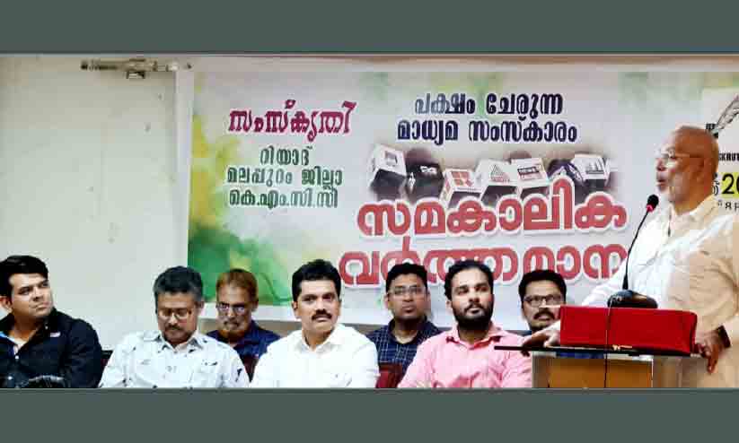 റിയാദ്: നേരിന്റെയും നന്മയുടെയും പക്ഷം ചേരാൻ മാധ്യമങ്ങൾക്ക് കഴിയണമെന്നും താൽപര്യങ്ങളുടെ പേരിൽ പക്ഷപാതിത്വം കാണിക്കുന്നത് നീതീകരിക്കാൻ കഴിയാത്തതാണെന്നും റിയാദ് കെ.എം.സി.സി മലപ്പുറം ജില്ല സംസ്കൃതി 'പക്ഷം ചേരുന്ന മാധ്യമ സംസ്കാരം' സംവാദ സദസ്സ് അഭിപ്രായപ്പെട്ടു.
