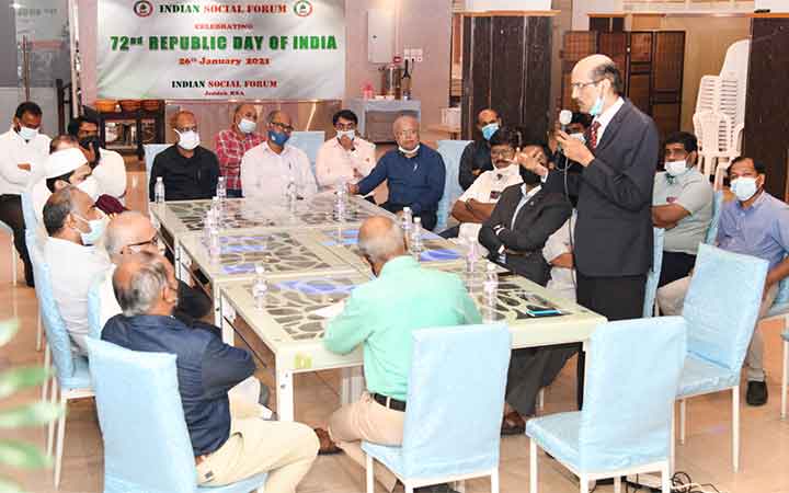 ജിദ്ദ: ഇന്ത്യൻ റിപ്പബ്ലിക് ദിനാഘോഷത്തോടനുബന്ധിച്ച് ഇന്ത്യൻ സോഷ്യൽ ഫോറം ജിദ്ദ സെൻട്രൽ കമ്മിറ്റി ടേബ്ൾ ടോക്ക് സംഘടിപ്പിച്ചു. സാംസ്കാരിക വൈവിധ്യങ്ങളുടെ വിളനിലമായ ഇന്ത്യ അതിെൻറ എല്ലാവിധ തനിമയോടെയും നിലനിന്ന് കാണാനാണ് ഓരോ ഇന്ത്യക്കാരനും ആഗ്രഹിക്കുന്നതെന്ന് ടേബ്ൾ ടോക്കിൽ സംബന്ധിച്ചവർ അഭിപ്രായപ്പെട്ടു.