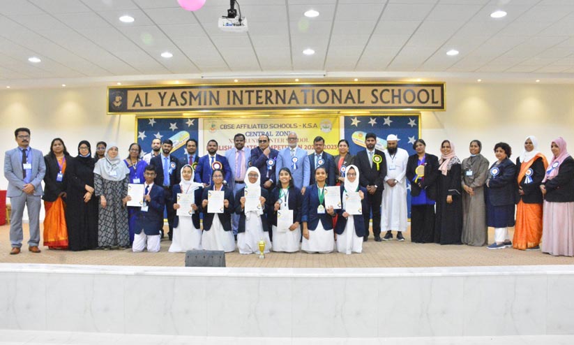 text_fieldsറിയാദ് അൽ-യാസ്മിൻ ഇന്റർനാഷനൽ സ്കൂളിൽ നടന്ന ഇന്റർസ്കൂൾ സോണൽ ഇംഗ്ലീഷ് ഡിബേറ്റ് സൗദി മധ്യമേഖല മത്സര വിജയികൾ