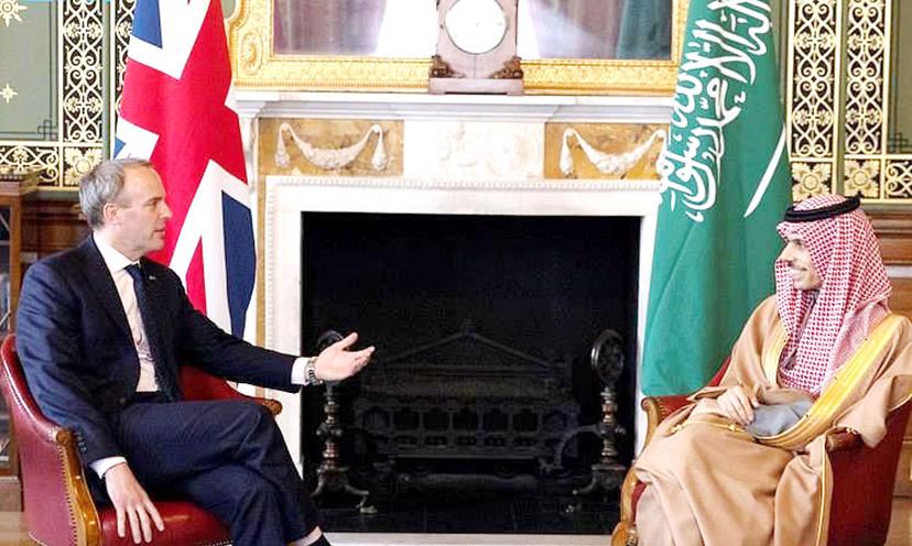 text_fieldsസൗദി വിദേശകാര്യ മന്ത്രി അമീർ ഫൈസൽ ബിൻ ഫർഹാൻ ബ്രിട്ടീഷ് വിദേശകാര്യ സെക്രട്ടറി ഡൊമിനിക് റാബുമായി ചർച്ച നടത്തുന്നു