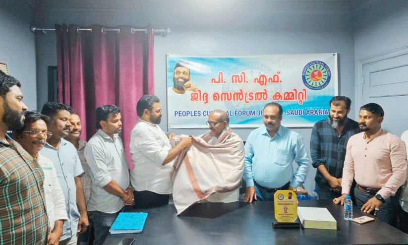 പി.സി.എഫ് ജിദ്ദ സെൻട്രൽ കമ്മിറ്റിക്കുവേണ്ടി അബ്ദുൽ റഷീദ് ഓയൂർ അഷ്റഫ് പൊന്നാനിക്ക് സ്നോഹപഹാരം നൽകി ആദരിച്ചു. ദിലീപ് താമരക്കുളം അധ്യക്ഷത വഹിച്ചു. അബ്ദുൽ റസാഖ് മാസ്റ്റർ മമ്പുറം സ്വാഗതം പറഞ്ഞു. അനീസ് കൊടുങ്ങല്ലൂർ, ഹാറൂൺ പെരുവള്ളൂർ, ബക്കർ സിദ്ധീഖ് നാട്ടുകൽ, ശിഹാബ് പൊന്മള, അസീസ് ഒതുക്കുങ്ങൽ, ഫൈസൽ പൊന്മള, റസാഖ് മാമ്പുഴ, ഈസ കിഴിശ്ശേരി, അബ്ദുൽ ഖാദർ തിരുനാവായ അബൂബക്കർ തുടങ്ങിയവർ സംബന്ധിച്ചു.