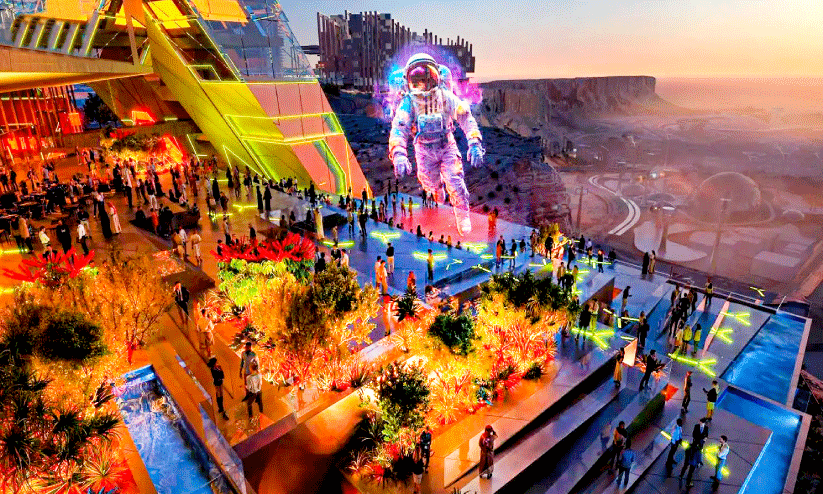 തുവൈഖ് പർവതനിരകളുടെ അരികിലാണ് പെർഫോമിങ് ആർട്സ് സെൻറർ സ്ഥിതി ചെയ്യുന്നത്. പ്രതിവർഷം 260-ലധികം ദേശീയ, അന്തർദേശീയ വിനോദ സാംസ്കാരിക പരിപാടികൾ അരങ്ങേറും. ഇവിടെ മൂന്ന് തിയറ്ററുകളിലായി 2400 സീറ്റുകളുണ്ട്. ഓരോന്നും 360 ഡിഗ്രി കാഴ്ചാനുഭവം പ്രദാനം ചെയ്യുന്നതാണ്. ചലനാത്മകവും ഡിജിറ്റൽ സാങ്കേതിക വിദ്യകളും സമന്വയിപ്പിച്ച് അതിശയകരമായ കാഴ്ച വാഗ്ദാനം ചെയ്യുന്ന ഒരു വേദിയും മുകളിൽനിന്ന് തൂങ്ങിക്കിടക്കുന്ന രൂപത്തിൽ 500 സീറ്റുകൾ ഉൾക്കൊള്ളുന്ന മറ്റൊരു സസ്പെൻഷൻ സ്റ്റേജും ആർട്ട് സെൻററിലുണ്ട്. ഗെയിമിങ്, ഇലക്ട്രോണിക് സ്പോർട്സ് ഏരിയ, അമീർ മുഹമ്മദ് ബിൻ സൽമാൻ സ്റ്റേഡിയം, സ്പീഡ് ട്രാക്ക്, ഡ്രാഗൺ ബാൾ അമ്യൂസ്മെൻറ് പാർക്ക്, ഖിദ്ദിയയിലും അക്വാറിബിയയിലും സിക്സ് ഫ്ലാഗ് പാർക്കുകൾ തുടങ്ങിയ വിനോദ, കായിക പദ്ധതികളുടെ പ്രഖ്യാപനത്തിന് ശേഷമാണ് ആദ്യത്തെ സാംസ്കാരിക കേന്ദ്രം പ്രഖ്യാപനം വരുന്നത്.