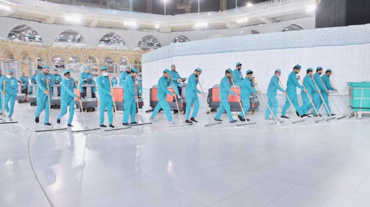 text_fieldsമക്ക ഹറമിനുള്ളിൽ ശുചീകരണത്തിലേർപ്പെട്ട തൊഴിലാളികൾ