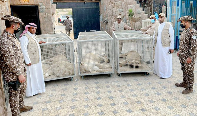 റിയാദിലെ ഒരു വിശ്രമകേന്ദ്രത്തിൽ മൂന്ന് സിംഹങ്ങളെ പാർപ്പിച്ചിരിക്കുകയാണെന്ന രഹസ്യ റിപ്പോർട്ടിനെ തുടർന്ന് ദേശീയ വന്യജീവി കേന്ദ്രത്തിൽനിന്നുള്ള സംഘം പരിസ്ഥിതി സുരക്ഷ സേനയുമായി സഹകരിച്ച് നടത്തിയ അന്വേഷണത്തിലാണ് കണ്ടെത്തൽ. സിംഹങ്ങളെ അനസ്തേഷ്യ നൽകി മയക്കി മൃഗസംരക്ഷണ കേന്ദ്രത്തിലേക്ക് മാറ്റി.