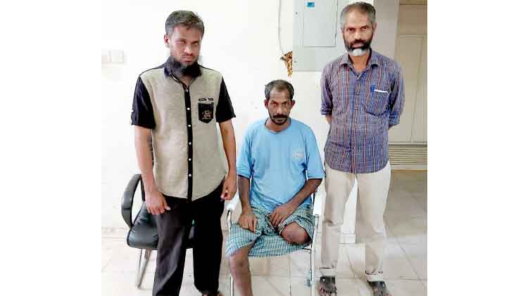 സഹപ്രവർത്തകെൻറ അശ്രദ്ധമൂലം കാൽ മുറിച്ചുമാറ്റേണ്ടിവന്ന രാജു നാടണഞ്ഞു