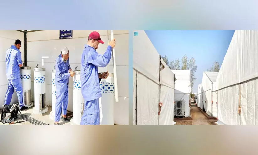 മിനായിൽ തമ്പുകളുടെ അറ്റകുറ്റപ്പണികളും പുതിയവ സ്ഥാപിക്കുന്നതും പുരോഗമിക്കുന്നു