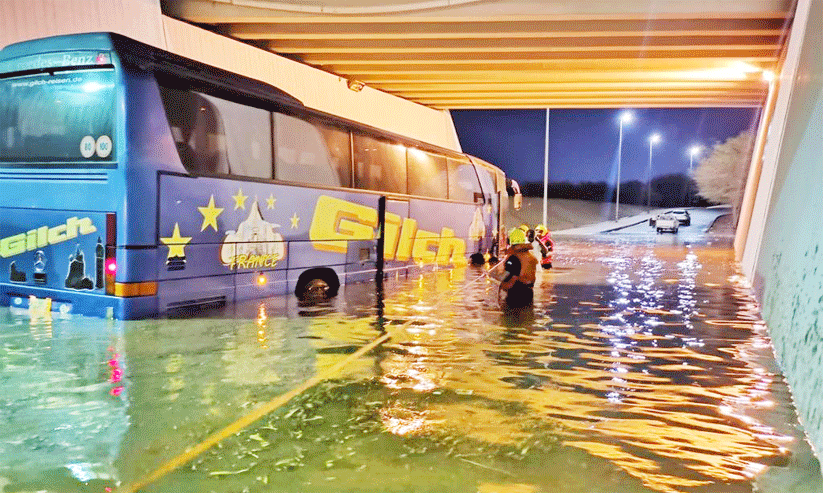 വെള്ളക്കെട്ടിൽ കുടുങ്ങിയ ബസ് യാത്രക്കാരെ രക്ഷപ്പെടുത്തി