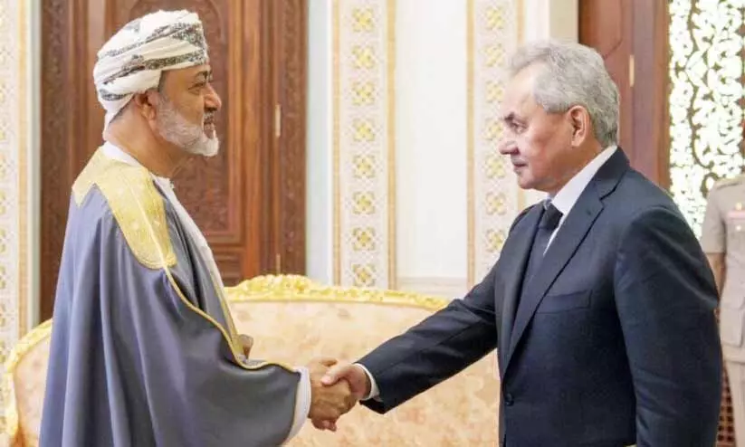 text_fieldsറഷ്യൻ സുരക്ഷ കൗൺസിൽ സെക്രട്ടറി സെർഗെയ് ഷോയ്ഗുവിനെ ബറക കൊട്ടാരത്തിൽ സുൽത്താൻ ഹൈതം ബിൻ താരിഖ് സ്വീകരിക്കുന്നു