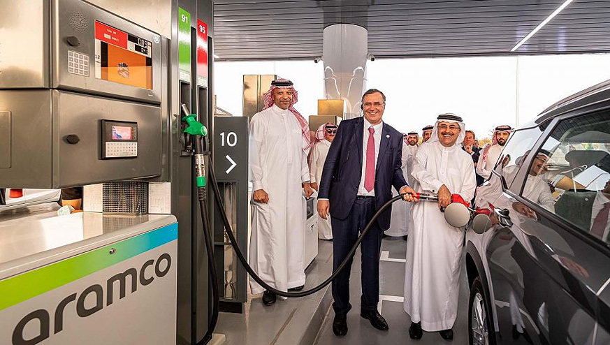 സൗദി ആരാംകോയും ടോട്ടൽ എനർജിയും ചേർന്ന് സ്ഥാപിച്ച ഇന്ധന സ്റ്റേഷൻ ഉദ്ഘാടനം ചെയ്തപ്പോൾ