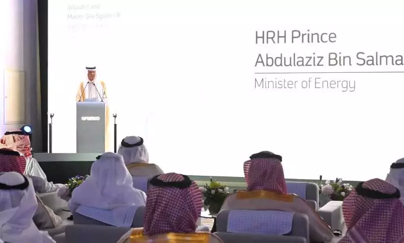 text_fieldsജഫൂറ പാടം വിപുലീകരണ പദ്ധതി കരാറൊപ്പിടൽ ചടങ്ങിൽ സൗദി ഊർജ മന്ത്രി അമീർ അബ്ദുൽ അസീസ് ബിൻ സൽമാൻ സംസാരിക്കുന്നു