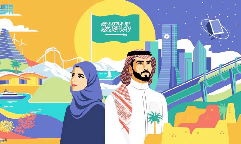രാജ്യത്തിന്റെ അഭിലാഷം, ബന്ധം, ഐക്യം എന്നിവയിൽനിന്ന് പ്രചോദനം ഉൾക്കൊള്ളുന്നതാണ് ചിഹ്നം. 'സൗദി ഞങ്ങളുടെ വീടാണ്' എന്നതാണ് ചിഹ്നത്തിൽ ആലേഖനം ചെയ്തിരിക്കുന്ന ആപ്തവാക്യം. രാജ്യം അതിലുള്ള എല്ലാവരെയും സംരക്ഷിക്കുകയും അവർക്കായി കഴിവുകൾ പ്രയോജനപ്പെടുത്തുകയും ചെയ്യുന്നതിൽനിന്ന് പ്രചോദനം ഉൾക്കൊണ്ടുള്ളതാണ് രൂപകൽപന. വളർച്ച, സുരക്ഷ, അഭിലാഷം, നിശ്ചയദാർഢ്യം, ജ്ഞാനം, വിശ്വസ്തത എന്നിങ്ങനെ രാജ്യവുമായി ബന്ധപ്പെട്ട നിരവധി അർഥങ്ങളെ പ്രതിഫലിപ്പിക്കുന്ന ഒരുകൂട്ടം നിറങ്ങൾ ഉപയോഗിച്ചുള്ള ഡിസൈൻ.