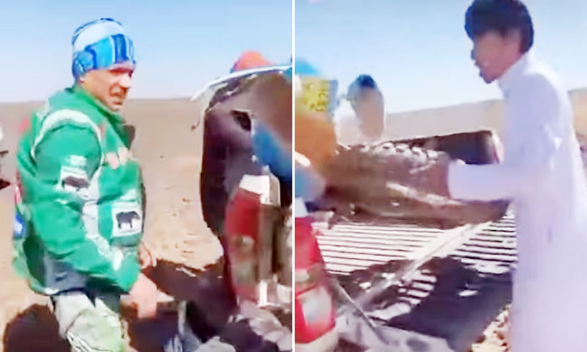 ഡകർ റാലിക്കിടെ മോട്ടോർ സൈക്കിൾ തകർന്ന മത്സരാർഥിക്ക് തുണയായി സൗദി യുവാക്കൾ