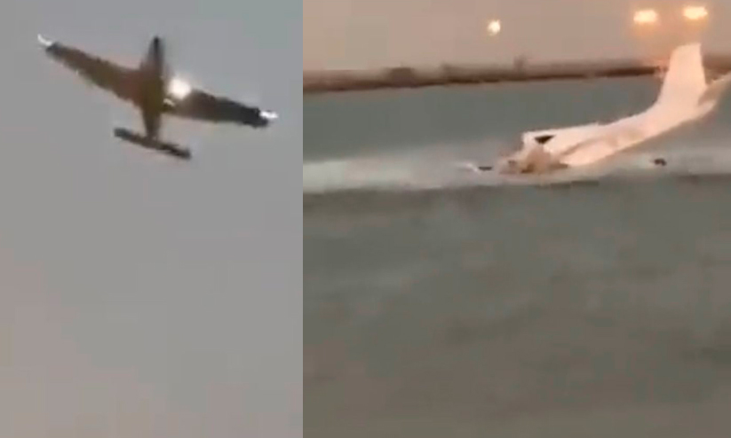 ചെറുവിമാനം കടലിൽ പതിക്കുന്നതിന് മുമ്പും ശേഷവുമുള്ള ദൃശ്യങ്ങൾ