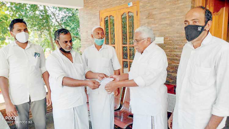 മുസ്ലിം ലീഗ് സംസ്ഥാന വൈസ് പ്രസിഡൻറ് സി.എ.എം.എ. കരീം കൈമാറുന്നു