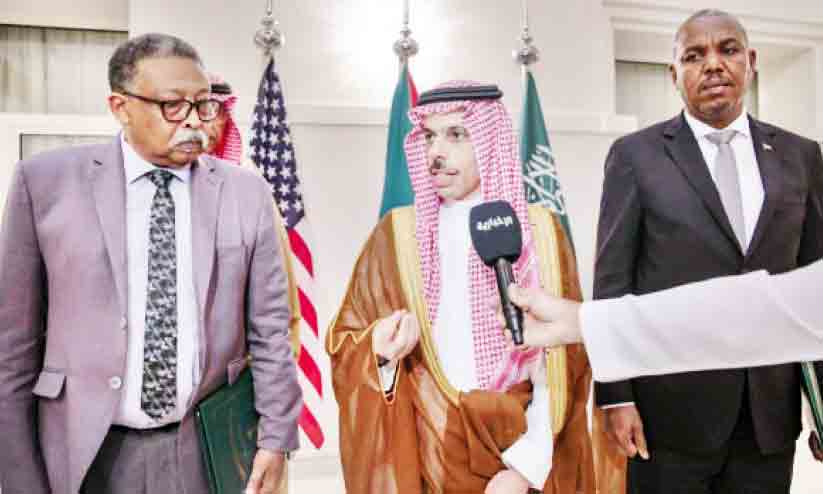 text_fieldsജിദ്ദയിൽ ഹ്രസ്വകാല വെടിനിർത്തൽ കരാറിൽ ഒപ്പുവെച്ചശേഷം സൗദി വിദേശകാര്യ മന്ത്രി ഫൈസൽ ബിൻ ഫർഹാൻ സുഡാൻ സൈനിക വിഭാഗങ്ങളുടെ പ്രതിനിധികളോടൊപ്പം