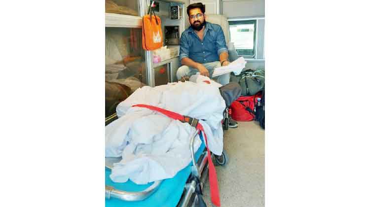 text_fieldsനാട്ടിലേക്കു കൊണ്ടുപോകുന്ന വെള്ളൈ സ്വാമി രാമകൃഷ്ണൻ സഹായിയോടൊപ്പം ആംബുലൻസിൽ