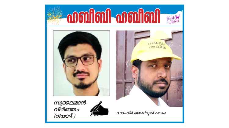 ജീവിതത്തിൽ പിണങ്ങിയിട്ടില്ലാത്ത സുഹൃത്തും സാഹിർ ആണെന്ന് എനിക്ക് ഓർക്കാനാകും. നാലുവർഷം മുമ്പ് നിറകണ്ണുകളോടെ പ്രവാസത്തോടു സലാം പറഞ്ഞു സാഹിർ സൗദി അറേബ്യ വിട്ടെങ്കിലും ഇന്നും ഞങ്ങളുടെ സൗഹൃദം ചൂടുള്ള സുലൈമാനി പോലെ മുഹബ്ബത്ത് നിറഞ്ഞു തുളുമ്പുന്നു. ഞങ്ങളുടെ ഇരു കുടുംബങ്ങളും ആ മുഹബ്ബത്തിെൻറ ആസ്വാദകരാണ്.