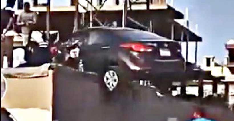 നിയന്ത്രണം വിട്ട കാർ വീടിന്റെ ഭിത്തിക്ക് മുകളിലേക്ക് ഇടിച്ചുകയറിയപ്പോൾ