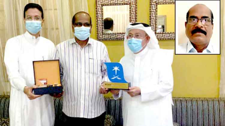 text_fieldsസൗദി സിവിൽ ഏവിയേഷൻ ജനറൽ അതോറിറ്റിയിൽനിന്ന് 30 വർഷത്തെ സേവനത്തിനുശേഷം വിരമിച്ച സൈനുലാബ്ദീൻ ചെമ്പൂരിനെ അതോറിറ്റി അധികൃതർ ഉപഹാരം നൽകി ആദരിച്ചപ്പോൾ, (ഇൻസെറ്റിൽ സൈനുലാബ്ദീൻ ചെമ്പൂര്)