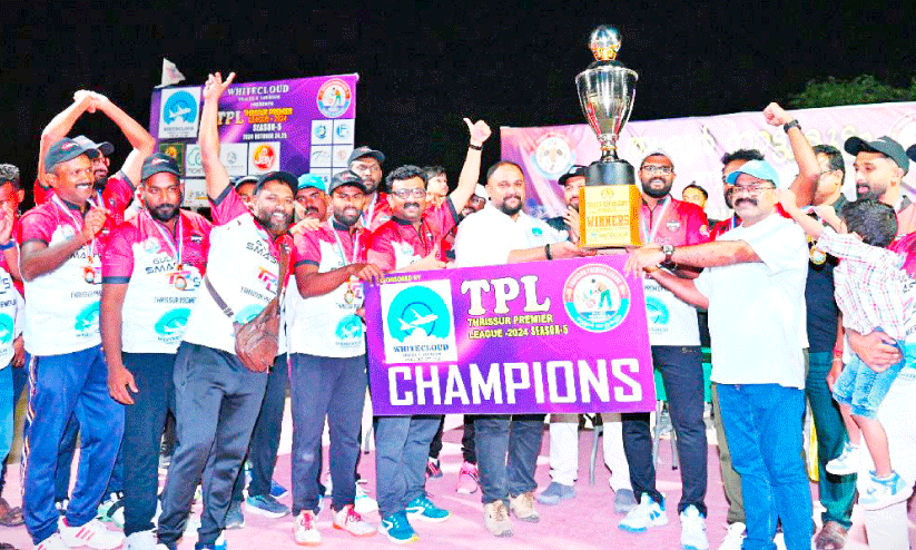 text_fieldsതൃശൂർ നാട്ടുകൂട്ടം ടി.പി.എൽ സീസൺ ഫൈവിൽ ജേതാക്കളായ ഗൾഫ് റോക്ക് സ്മാഷേഴ്സ്
