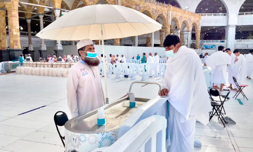 സംസം വിതരണം ചെയ്യുന്നവർക്ക് കുടകൾ