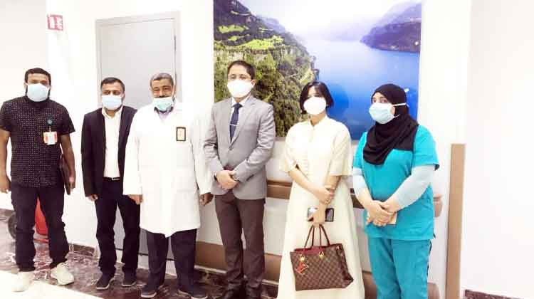 ഹംന മറിയം (കോൺസൽ, കോമേഴ്സ്), മുഹമ്മദ് ഷമീം (കോഓഡിനേറ്റർ, യു.എൻ.എ മക്ക ), അബൂബക്കർ (കോഓഡിനേറ്റർ, യു.എൻ.എ നജ്റാൻ), സമീന (ഡെപ്യൂട്ടി നഴ്സിങ് ഡയറക്ടർ), സിന്ധു (നഴ്സിങ് ക്വാളിറ്റി) എന്നിവർ കോൺസൽ ജനറലിെൻറ കൂടെ ഉണ്ടായിരുന്നു.