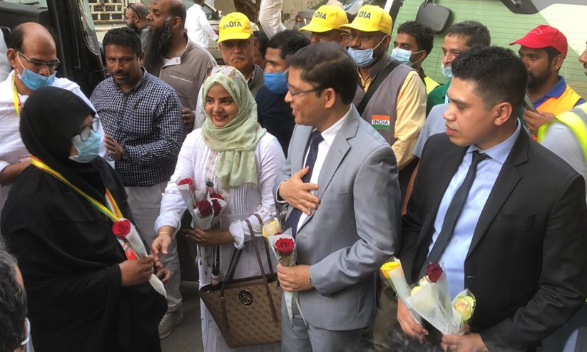 753 ഹാജിമാരാണ് ആദ്യ സംഘത്തിലുള്ളത്. മദീനയില് എട്ട് ദിവസത്തെ സന്ദര്ശനം പൂര്ത്തിയാക്കിയെത്തിയ ഹാജിമാരെ സ്വീകരിക്കാൻ ജിദ്ദയിലെ ഇന്ത്യൻ കോൺസൽ ജനറൽ ഷാഹിദ് ആലം, ഹജ്ജ് കോൺസൽ സാബിർ എന്നിവർ എത്തിയിരുന്നു. വനിതകളും കുട്ടികളും ഉൾപ്പെടെ വിവിധ സംഘടനാ വളന്റിയർമാർ ഭക്ഷണവും സമ്മാനപ്പൊതികളുമായി ഹാജിമാരെ വരവേറ്റു. മക്കയിലെ അസീസിയയിൽ ഇന്ത്യൻ ഹാജിമാർക്ക് ഒരുക്കിയ ഒന്ന്, രണ്ട്, 11 നമ്പറുകളിലുള്ള ബിൽഡിങ്ങുകളിലാണ് ആദ്യ സംഘം ഹാജിമാർക്ക് താമസം ഒരുക്കിയിട്ടുള്ളത്.