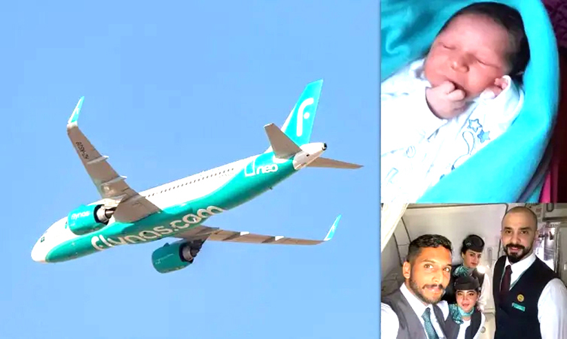 ഫ്ലൈനാസിന്റെ എക്സ്.വൈ 565 വിമാനത്തിൽ ഞായറാഴ്ച ജിദ്ദയിൽനിന്ന് കൈറോവിലേക്കു തിരിച്ച 26കാരിയാണ് വിമാനത്തിനകത്ത് പ്രസവിച്ചത്. തങ്ങളുടെ യാത്രക്കാരിലൊരാളായ യുവതിക്ക് പ്രസവവേദന തുടങ്ങിയെന്ന് അറിഞ്ഞതോടെ വിമാനജീവനക്കാർ ഉടൻ പ്രഥമശുശ്രൂഷ നൽകുകയും വിമാനത്തിലുണ്ടായിരുന്ന ഡോക്ടറോട് സഹായം തേടുകയും ചെയ്തു. ഡോക്ടറുടെ പരിചരണത്തിൽ വിമാനം കൈറോവിലെത്തുന്നതിനുമുമ്പു തന്നെ പ്രസവം സാധാരണഗതിയിൽ നടക്കുകയായിരുന്നു. അമ്മയും കുഞ്ഞും സുഖമായിരിക്കുന്നു. ഇരുവരുടെയും ആരോഗ്യനില നല്ല അവസ്ഥയിലാണെന്ന് ഡോക്ടർ സ്ഥിരീകരിക്കുകയും ചെയ്തു. കൈറോ അന്താരാഷ്ട്ര വിമാനത്താവളത്തിലെത്തിയ ഉടനെ ആംബുലൻസ് മെഡിക്കൽ സംഘം അമ്മയുടെയും കുഞ്ഞിന്റെയും ആരോഗ്യാവസ്ഥ പരിശോധിച്ച് ഉറപ്പുവരുത്തി. കൂടുതൽ പരിശോധനക്കായി ഇവരെ ആശുപത്രിയിലേക്കു മാറ്റി.
