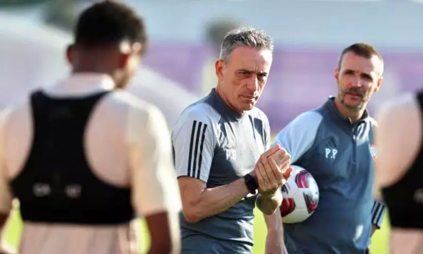 text_fieldsഏഷ്യൻ കപ്പിന് മുന്നോടിയായി അബൂദബിയിൽ നടന്ന പരിശീലനത്തിൽ ടീം മാനേജർ പൗളോ ബെന്റോ കളിക്കാർക്ക് നിർദേശങ്ങൾ നൽകുന്നു (ഫയൽ ചിത്രം)