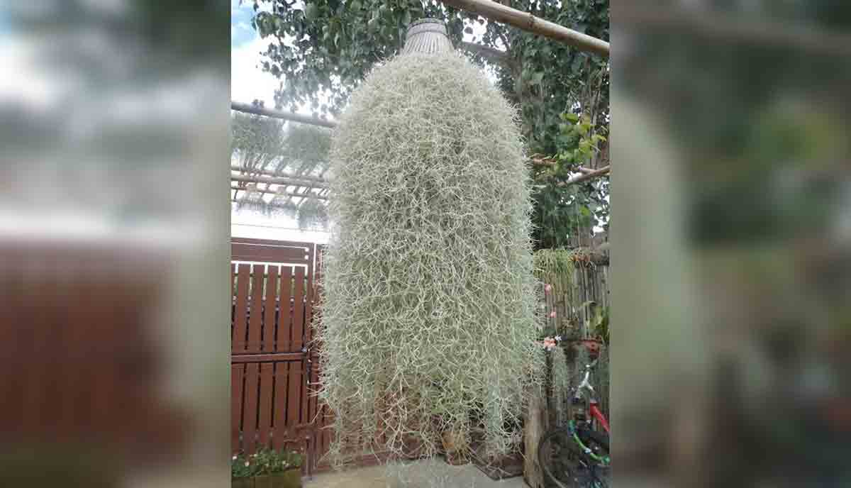 ഇതിനെ അപ്പൂപ്പൻ താടി എന്നും വിളിക്കാറുണ്ട്. മെറ്റൽ വയറിൽ തൂക്കിയിടരുത്. മെറ്റലിെൻറ ചൂടു തട്ടിയാൽ ചെടി ചീത്തയാകും. ഓർക്കിഡിന് സ്പ്രേ ചെയ്യുന്ന പോലെ സ്പ്രേ ചെയ്യാം. ഓർക്കിടിെൻറ വളം ഇതിനും ഉപയോഗിക്കാം. ഈ ചെടി താഴേക്കാണ് വളരുന്നത്. താഴേക്കു തൂങ്ങി കിടക്കുന്നത് കാണാൻ നല്ല ഭംഗിയാണ്.