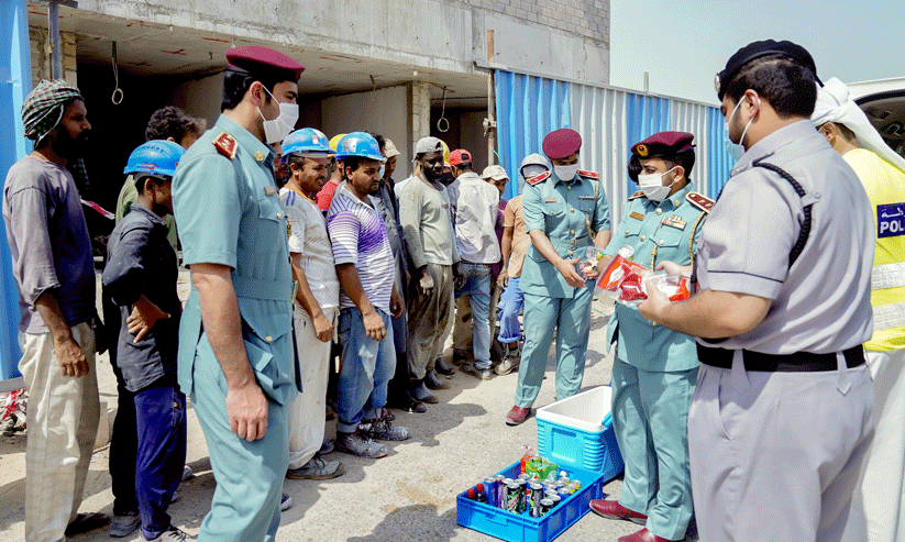 പൊലീസ് മീഡിയ ആൻഡ് പബ്ലിക് റിലേഷൻസ് ഡിപ്പാർട്ട്മെന്റിന്റെയും കമ്യൂണിറ്റി പൊലീസ് ഡിപ്പാർട്ട്മെന്റിന്റെയും സഹകരണത്തോടെ എമിറേറ്റിലെ നിരവധി സൈറ്റുകൾ സന്ദർശിച്ച് തൊഴിലാളികൾക്ക് ശീതളപാനീയങ്ങള് വിതരണം ചെയ്തു.
