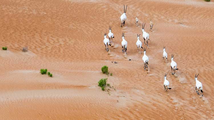 ഒറിക്സുകൾ ഓടി നടക്കുന്ന അറബ് മരുഭൂമി