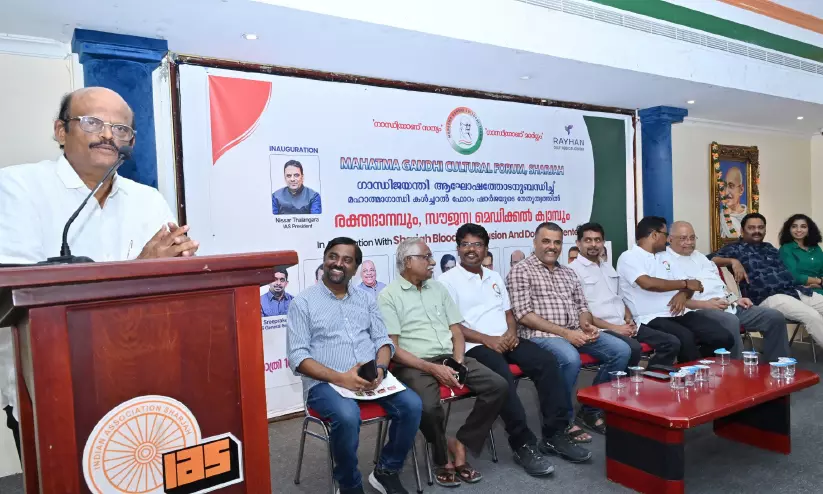 ഷാർജ: ഗാന്ധി ജയന്തി ആഘോഷത്തോടനുബന്ധിച്ച് ’ഗാന്ധിയാണ് സത്യം, ഗാന്ധിയാണ് മാർഗം’ എന്ന പേരിൽ മഹാത്മാഗാന്ധി കൾചറൽ ഫോറം ഷാർജയുടെ നേതൃത്വത്തിൽ ഷാർജ ബ്ലഡ് ട്രാൻസ്ഫ്യൂഷൻ ആൻഡ് ഡോണേഷൻ സെന്ററുമായി സഹകരിച്ച് രക്തദാനവും സൗജന്യ മെഡിക്കൽ ക്യാമ്പും സംഘടിപ്പിച്ചു.
