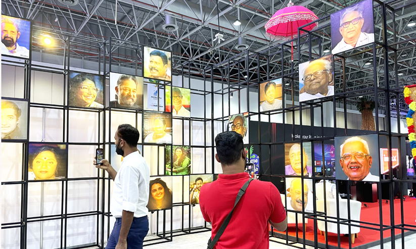 text_fieldsകമോൺ കേരള എക്സിബിഷൻ ഹാളിന്റെ പ്രവേശനകവാടത്തിൽ സ്ഥാപിച്ച കേരളത്തിന്റെ സാംസ്കാരിക, രാഷ്ട്രീയ നായകരുടെ ചിത്രങ്ങൾ