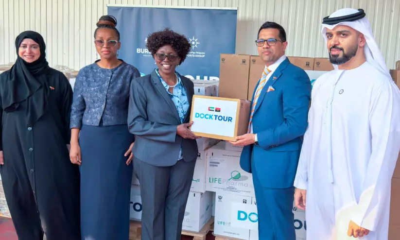 text_fieldsഅംഗോളൻ ആരോഗ്യ മന്ത്രി ഡോ. സിൽവിയ ലുട്ടക്റ്റക്ക് ബുർജീൽ ഹോൾഡിങ്സ് കോ സി.ഇ.ഒ സഫീർ അഹ്മദും എ.ഡി പോർട്ട് ഉദ്യോഗസ്ഥരും ചേർന്ന് മരുന്നുകൾ കൈമാറുന്നു