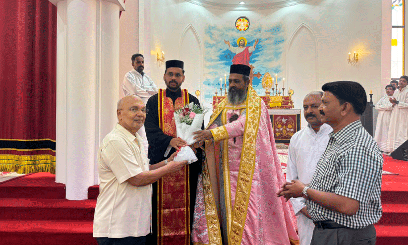 text_fieldsഅൽഐൻ സെന്റ് ഡയനീഷ്യസ് ഓർത്തഡോക്സ് ഇടവക ഡോ. ജോർജ് മാത്യൂവിന് പൂച്ചെണ്ട് നൽകി ആദരിക്കുന്നു