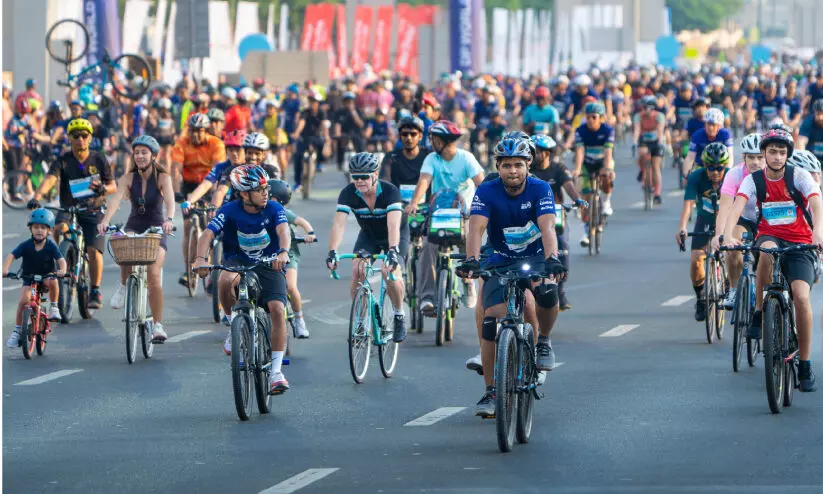 ദുബൈ: ഇടതടവില്ലാതെ വാഹനങ്ങൾ ചീറിപ്പായുന്ന ശൈഖ് സായിദ് റോഡിനെ നീലസാഗരമാക്കി സൈക്ലിസ്റ്റുകൾ. ദുബൈ ഫിറ്റ്നസ് ചലഞ്ചിന്റെ ഭാഗമായി നടന്ന ദുബൈ റൈഡിൽ വൻ ജനപങ്കാളിത്തം. പ്രഫഷനലുകളും അല്ലാത്തവരുമായ 40,327 സൈക്ലിസ്റ്റുകളാണ് ദുബൈ റൈഡിന്റെ ഭാഗമായത്. ഡി.പി വേൾഡായിരുന്നു പ്രായോജകർ.