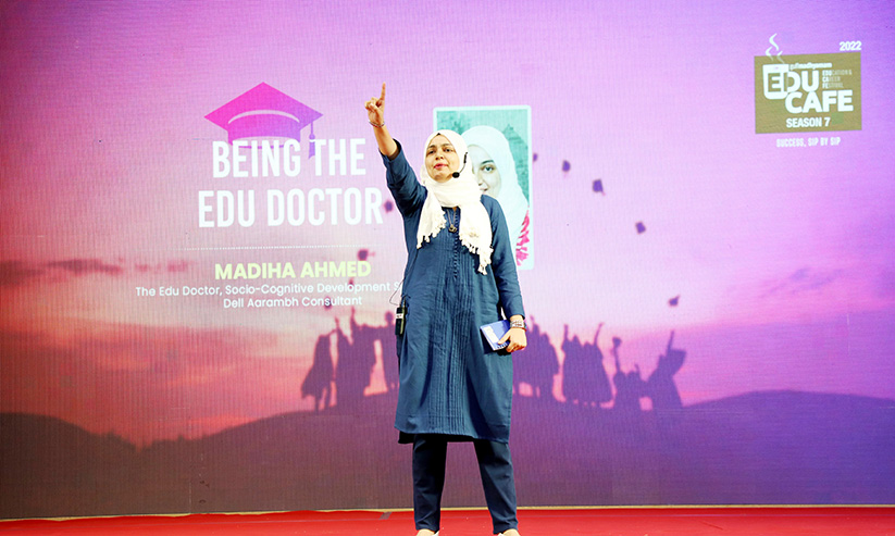 text_fieldsമദീഹ അഹമ്മദ് എജുകഫേയിൽ വിഷയാവതരണം നടത്തുന്നു