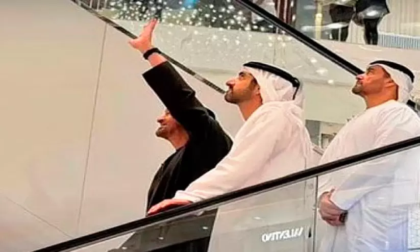 ദുബൈ മാളിൽ സന്ദർശനം നടത്തുന്ന ശൈഖ് മുഹമ്മദ് ബിൻ സായിദ് ആൽ നഹ്യാനും ശൈഖ് ഹംദാൻ ബിൻ മുഹമ്മദ്