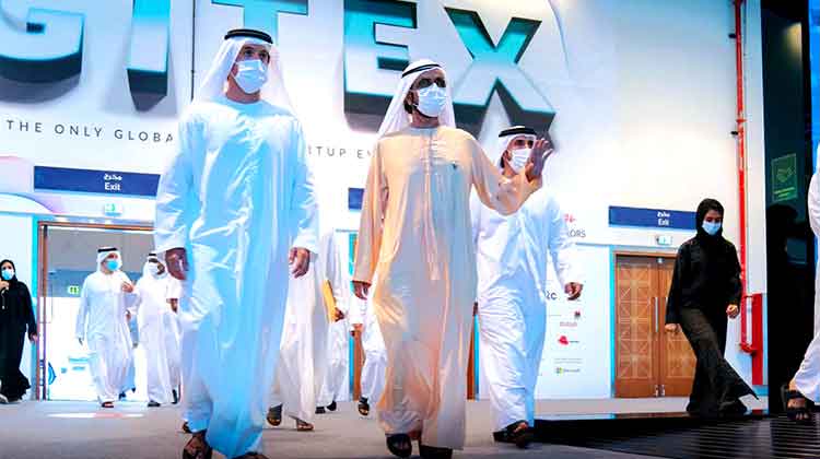 text_fieldsജൈടെക്സ് പ്രദർശന നഗരിയിൽ സന്ദർശനത്തിനെത്തിയ ശൈഖ് മുഹമ്മദ് ആഗോള സാങ്കേതിക വിദഗ്ധരെ അഭിവാദ്യം ചെയ്യുന്നു