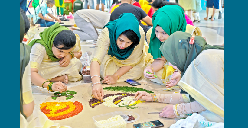 ഗൾഫ് മാധ്യമം ഓണോത്സവത്തിൽ പൂക്കളമിടുന്ന മത്സരാർഥി
