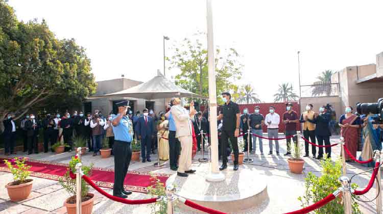 text_fieldsഅബൂദബി ഇന്ത്യൻ എംബസിയിൽ അംബാസഡർ പവൻ കപൂർ പതാക ഉയർത്തുന്നു