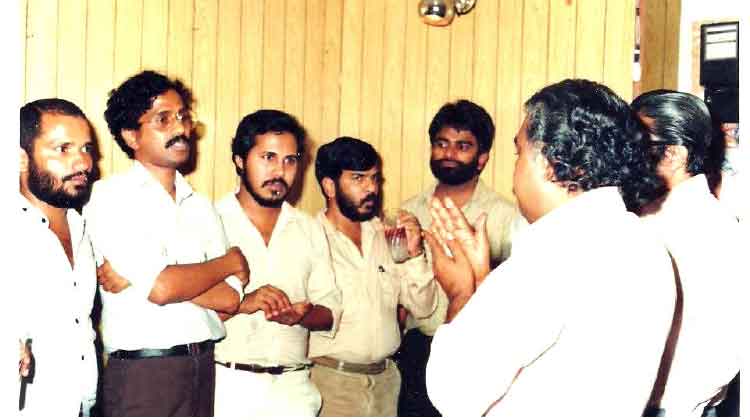 text_fields1986ൽ യു.എ.ഇയിലെത്തിയ കവി കടമ്മനിട്ട രാമകൃഷ്ണനുമായി കൃഷ്ണദാസ് (ഇടത്തുനിന്ന് രണ്ടാമത്) സൗഹൃദം പങ്കുവെക്കുന്നു