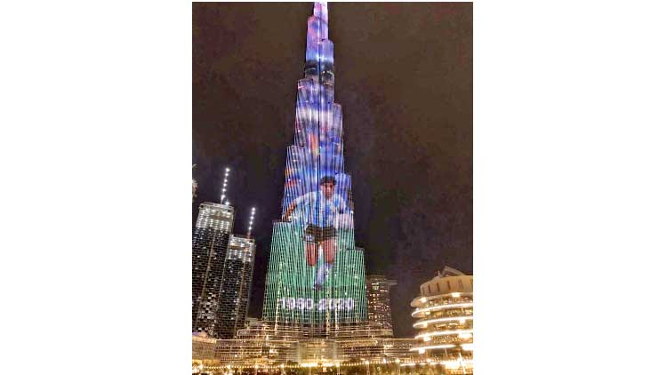 text_fieldsമറഡോണക്ക് ആദരമർപ്പിച്ച് ദുബൈ ബുർജ് ഖലീഫയിൽ ഇതിഹാസ താരത്തിെൻറ ചിത്രം തെളിഞ്ഞപ്പോൾ