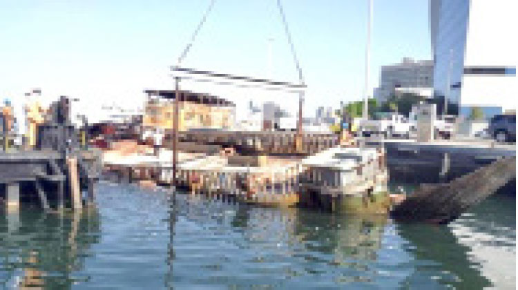 ദുബൈ ക്രീക്കിൽ വെള്ളത്തിൽ മുങ്ങിയ േഫ്ലാട്ടിങ് റസ്റ്റാറൻറ്
