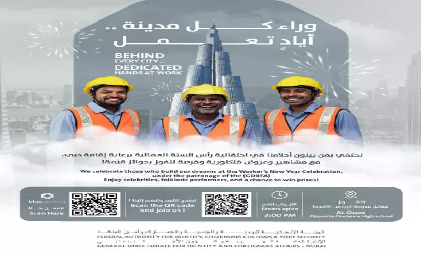 ദുബൈ: പുതുവർഷത്തെ വരവേൽക്കാൻ ദുബൈയിലെ തൊഴിലാളികൾക്കായി വമ്പൻ ആഘോഷ പരിപാടികൾ ഒരുങ്ങുന്നു. ദുബൈ ജനറൽ ഡയറക്ടറേറ്റ് ഓഫ് ഐഡന്റിറ്റി ആൻഡ് ഫോറിനേഴ്സ് അഫയേഴ്സ് (ജി.ഡി.ആർ.എഫ്.എ) ദുബൈ പെർമനന്റ് കമ്മിറ്റി ഫോർ ലേബർ അഫയേഴ്സുമായി സഹകരിച്ചാണ് അതിവിപുലമായ ആഘോഷ പരിപാടികൾ സംഘടിപ്പിക്കുന്നത്.
