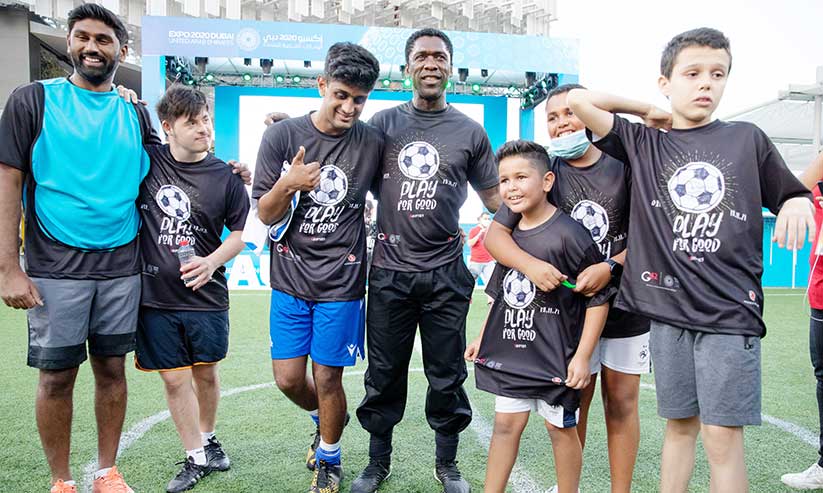 ദുബൈ എക്സ്പോയിലെ മൈതാനത്ത് പന്തുതട്ടാനിറങ്ങിയ ഈ കുട്ടികളുടെ ഇടയിലേക്ക് ഡച്ച് ഫുട്ബാൾ താരം ക്ലാരൻസ് സീഡോഫ് എത്തിയത് മത്സരത്തിന് ആവേശം പകർന്നു.