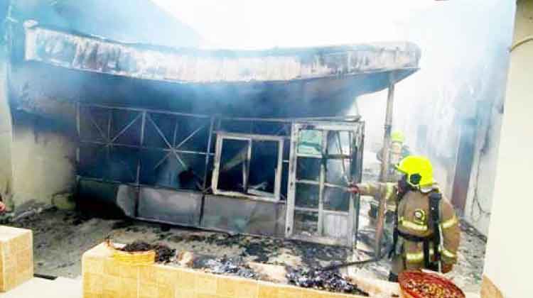 ടെൻറും സമീപ പ്രദേശങ്ങളും വ്യാപകമായി കത്തിനശിച്ചു. വെള്ളിയാഴ്ച രാവിലെ 7.21നാണ് സിവിൽ ഡിഫൻസിെൻറ ഓഫിസിൽ ഫോൺ വിളി എത്തുന്നത്. ഏഴ് മിനിറ്റിനുള്ളിൽ സംഭവസ്ഥലത്തെത്തിയ സംഘം എട്ട് മണിയോടെ തീ പൂർണമായും അണച്ചു.