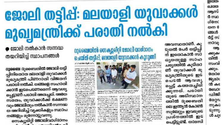 ദുബൈയിലെ ജോലി തട്ടിപ്പ്: യുവാക്കൾക്ക് സഹായവുമായി ലോക കേരള സഭ