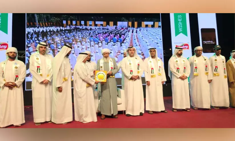 ദുബൈ: ദുബൈ ഗ്രാൻഡ് മീലാദ് സിൽവർ ജൂബിലി ആഘോഷത്തിന്റെ ഭാഗമായി ഏർപ്പെടുത്തിയ ഗ്രാൻഡ് ടോളറൻസ് അവാർഡ് കാന്തപുരം എ.പി. അബൂബക്കർ മുസ്ലിയാർക്ക് യു.എ.ഇ മുൻ പരിസ്ഥിതി മന്ത്രി ഡോ. മുഹമ്മദ് സഈദ് അൽ കിന്ദി സമ്മാനിച്ചു.